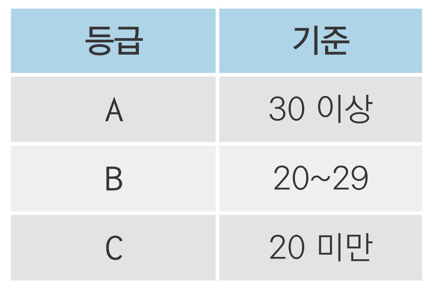 # total 기준으로 A, B, C 등급 부여