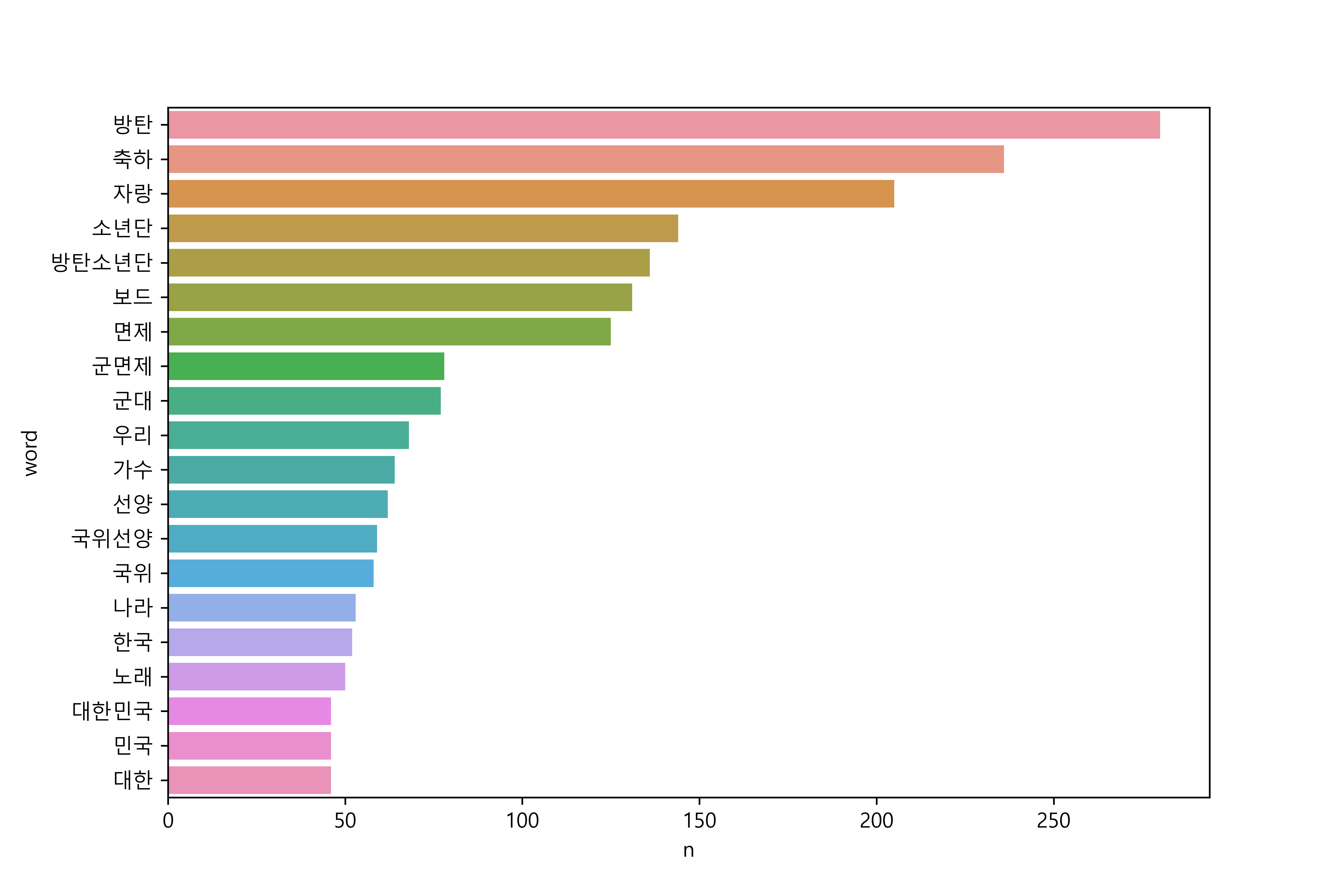 워드 클라우드(word cloud): 단어의 빈도를 구름 모양으로 표현한 그래프